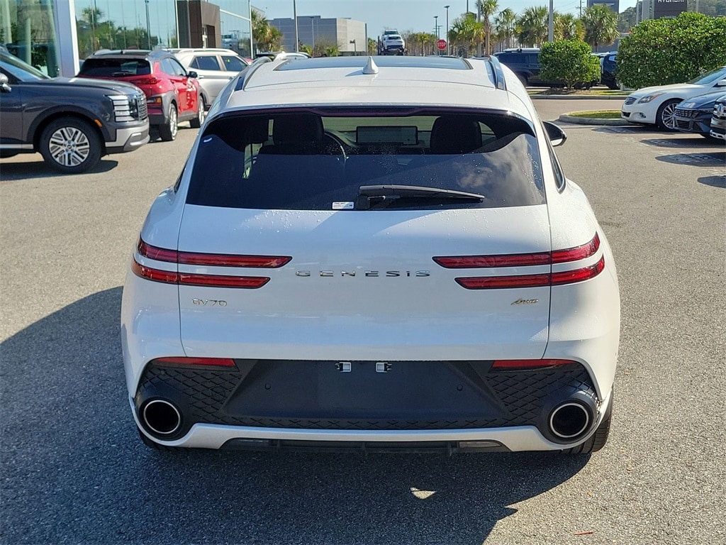 The price does not include tax, tag, license, an electronic filing fee of $449.00**, a private tag agency fee of $199.00**, and a predelivery service charge of $1199.00** **This charge represents costs and profit to the dealer for items such as inspecting, cleaning, and adjusting vehicles, as well as preparing documents related to the sale. * EPA-estimate metric: these are contingent on ideal conditions within a lab. Real-world situations such as carrying passengers or cargo, using climate control, driving style, and ambient temperatures can affect actual metrics. 22/28 City/Highway MPG Certified. Uyuni White 2025 Genesis GV70 2.5T AWD 8-Speed Automatic with SHIFTRONIC 2.5L DOHC