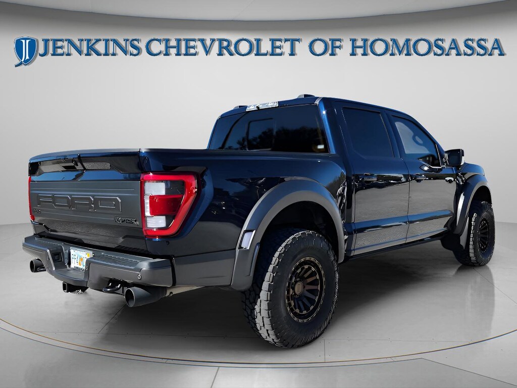 This vehicle comes equipped with Equipment Group 801A Standard, GVWR: 7,300 lbs Payload Package, Moonroof & Tailgate (Power Tailgate and Twin Panel Moonroof), 4WD, 17" Cast Aluminum Wheels, 18 Speakers, 4-Wheel Disc Brakes, ABS brakes, Adaptive suspension, Adjustable pedals, Air Conditioning, Alloy wheels, AM/FM radio: SiriusXM with 360L, Auto High-beam Headlights, Auto tilt-away steering wheel, Auto-dimming door mirrors, Auto-dimming Rear-View mirror, Automatic temperature control, Brake assist, Bumpers: body-color, Compass, Delay-off headlights, Driver door bin, Driver vanity mirror, Dual front impact airbags, Dual front side impact airbags, Electronic Locking w/4.10 Axle Ratio, Electronic Stability Control, Emergency communication system, Exterior Parking Camera Rear, Front anti-roll bar, Front Bucket Seats, Front Center Armrest, Front dual zone A/C, Front fog lights, Front reading lights, Front wheel independent suspension, Fully automatic headlights, Garage door transmitter, Heated door mirrors, Heated front seats, Heated rear seats, Heated steering wheel, Illuminated entry, Inclination/Intrusion Sensor Removal, Lane Departure Warning System, Leather Trim Seats w/Heated 2nd Row, Low tire pressure warning, Memory seat, Navigation system: Connected Navigation, Occupant sensing airbag, Outside temperature display, Overhead airbag, Overhead console, Panic alarm, Passenger door bin, Passenger vanity mirror, Pedal memory, Power door mirrors, Power driver seat, Power passenger seat, Power steering, Power windows, Radio data system, Radio: B&O Unleashed Sound System by Bang & Olufsen, Rain sensing wipers, Rear reading lights, Rear step bumper, Rear window defroster, Remote keyless entry, Security system, Soft Folding Tonneau Box Cover (Dealer Installed), Speed control, Speed-sensing steering, Split folding rear seat, Steering Wheel Heat Removal (DISC), Steering wheel memory, Steering wheel mounted audio controls, SYNC 4 w/Enhanced Voice Recognition, Tachometer, Telescoping steering wheel, Tilt steering wheel, Tough Bed Spray-In Bedliner, Traction control, Trip computer, Turn signal indicator mirrors, Variably intermittent wipers, and Ventilated front seats . Jenkins Chevrolet of Homosassa proudly serving Homosassa, Spring Hill, Hernando, Crystal River, Beverly Hills, Inverness. Just a half hour North of Buccaneer Bay. Come see the large, expansive inventory of the Jenkins Auto Group. 14/16 City/Highway MPG 4WD. CARFAX One-Owner. Blue Metallic 2023 Ford F-150 Raptor 4WD 10-Speed Automatic 3.5L V6 EcoBoost