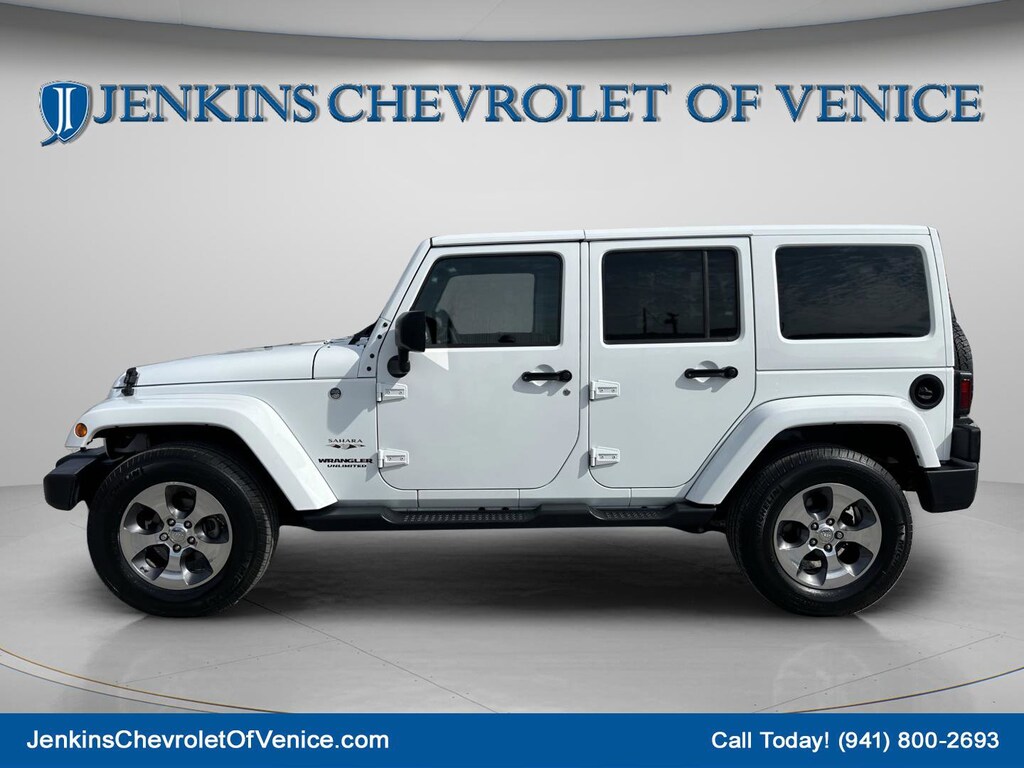 CALL OR TEXT 941-451-5422 NOW FOR PROFESSIONAL SALES ASSISTANCE! 16/20 City/Highway MPG 3.73 Rear Axle Ratio, 40GB Hard Drive w/28GB Available, 5-Year SiriusXM Travel Link Service, 6.5" Touchscreen Display, Alloy wheels, Alpine 9-Speaker w/All Weather Subwoofer, Audio Jack Input for Mobile Devices, Body Color Appliques Front Bumper, Body Color Appliques Rear Bumper, Body Color/Accent Color Grille, Brake assist, Class II Receiver Hitch, Connectivity Group, Freedom Top Hard Top Headliner, Front Bucket Seats, Front Center Armrest w/Storage, Front fog lights, Fully automatic headlights, GPS Navigation, Illuminated entry, Integrated roll-over protection, Leather steering wheel, Manufacturer's Statement of Origin, Max Tow Package, Outside temperature display, Power steering, Power windows, Quick Order Package 24G, Radio data system, Remote keyless entry, Remote Start System, Remote USB Port, SiriusXM Travel Link, Steering wheel mounted audio controls, Tilt steering wheel, Tire Pressure Monitoring Display, Trailer Tow w/4-Pin Connector Wiring, Trip computer, Uconnect Voice Command w/Bluetooth, Vehicle Information Center. Bright White Clearcoat 2017 Jeep Wrangler Unlimited Sahara 4WD 5-Speed Automatic 3.6L V6 24V VVT
