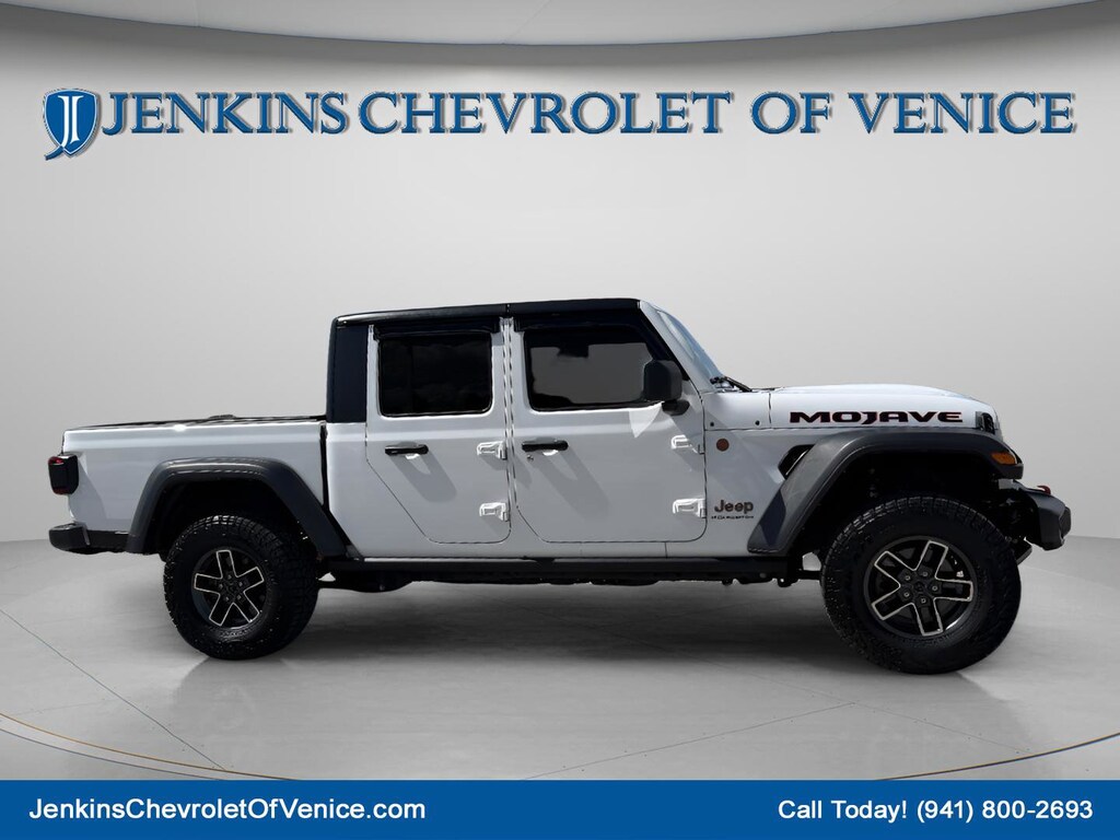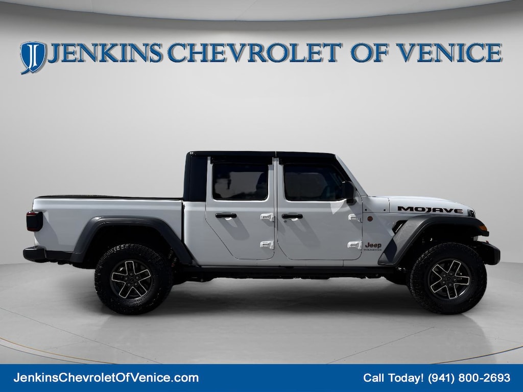 CALL OR TEXT 941-451-5422 NOW FOR PROFESSIONAL SALES ASSISTANCE! 17/22 City/Highway MPG 12.3" Touchscreen Display, 4G LTE Wi-Fi Hot Spot, 8 Speakers, 97 MPH Vehicle Max Speed Calibration, Air Conditioning, Alexa Built-In, Alloy wheels, AM/FM radio: SiriusXM, Automatic temperature control, Brake assist, Compass, Connectivity - US/Canada, Convenience Group, Delay-off headlights, Emergency communication system: Jeep Connect, Front Bucket Seats, Front dual zone A/C, Front fog lights, Front reading lights, Fully automatic headlights, Google Android Auto, Heated Front Seats, Heated Steering Wheel, Heavy Duty Suspension w/Gas Shocks, Illuminated entry, Outside temperature display, Power steering, Power windows, Quick Order Package 24D Mojave, Radio data system, Radio: Uconnect 5 w/12.3" Display, Rear reading lights, Remote keyless entry, Remote Start System, SiriusXM Radio Service, SiriusXM w/360L, Split folding rear seat, Steering wheel mounted audio controls, Tachometer, Telescoping steering wheel, Tilt steering wheel, Trip computer, Universal Garage Door Opener, Voltmeter. Bright White Clearcoat 2025 Jeep Gladiator Mojave 4WD 8-Speed Automatic 3.6L V6 24V VVT