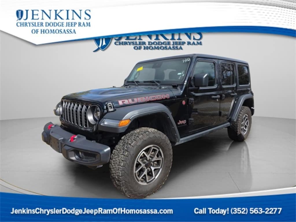 DECEMBER SAVINGS, END OF YEAR DEALS, GET THEM BEFORE THEY ARE GONE! The price does not include tax, tag, license, an electronic filing fee of $449.00**, a private tag agency fee of $199.00**, and a predelivery service charge of $1199.00** **This charge represents costs and profit to the dealer for items such as inspecting, cleaning, and adjusting vehicles, as well as preparing documents related to the sale. * EPA-estimate metric: these are contingent on ideal conditions within a lab. Real-world situations such as carrying passengers or cargo, using climate control, driving style, and ambient temperatures can affect actual metrics. 20/22 City/Highway MPG ALLOY WHEELS, BACKUP CAMERA, BLUETOOTH, CLIMATE PACKAGE, REMOTE START, TOW PACKAGE, TINTED WINDOWS. CARFAX One-Owner. Clean CARFAX. Black Clearcoat 2025 Jeep Wrangler Rubicon 4WD 8-Speed Automatic 2.0L I4 DOHC