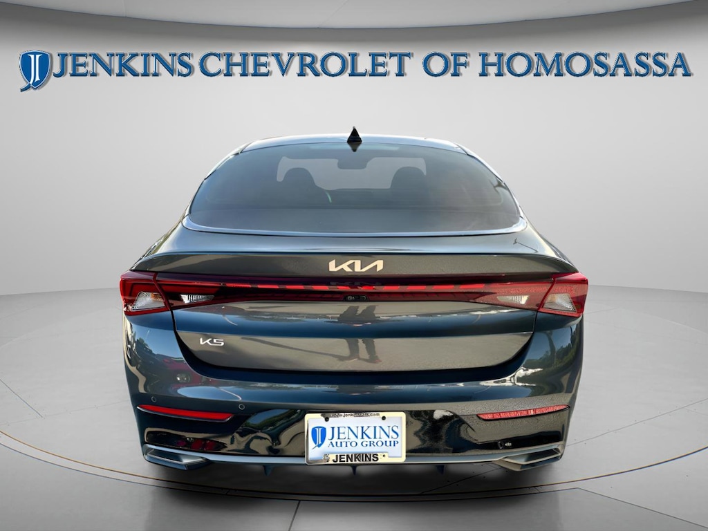 This vehicle comes equipped with EX Ash Blue Color Package, 4-Wheel Disc Brakes, 6 Speakers, ABS brakes, Air Conditioning, Alloy wheels, AM/FM radio: SiriusXM, Apple CarPlay & Android Auto, Auto High-beam Headlights, Automatic temperature control, Brake assist, Bumpers: body-color, Carpeted Floor Mats, Delay-off headlights, Driver door bin, Driver vanity mirror, Dual front impact airbags, Dual front side impact airbags, Electronic Stability Control, Emergency communication system, Four wheel independent suspension, Front anti-roll bar, Front Bucket Seats, Front Center Armrest, Front dual zone A/C, Front reading lights, Fully automatic headlights, Heated & Ventilated Front Bucket Seats, Heated door mirrors, Heated front seats, Illuminated entry, Knee airbag, Low tire pressure warning, Navigation System, Occupant sensing airbag, Outside temperature display, Overhead airbag, Overhead console, Panic alarm, Passenger door bin, Passenger vanity mirror, Power door mirrors, Power driver seat, Power moonroof, Power steering, Power windows, Radio data system, Radio: AM/FM/MP3 Audio System, Rear anti-roll bar, Rear reading lights, Rear seat center armrest, Rear side impact airbag, Rear window defroster, Remote keyless entry, Security system, Smart Key w/ Push Button and Remote Start, Speed control, Speed-sensing steering, Split folding rear seat, Steering wheel mounted audio controls, SynTex Seat Trim, Tachometer, Telescoping steering wheel, Tilt steering wheel, Traction control, Trip computer, Variably intermittent wipers, Ventilated front seats, and Wheels: 18" Gray Machined Finish Alloy . Jenkins Chevrolet of Homosassa proudly serving Homosassa, Spring Hill, Hernando, Crystal River, Beverly Hills, Inverness. Just a half hour North of Buccaneer Bay. Come see the large, expansive inventory of the Jenkins Auto Group. 27/37 City/Highway MPG CARFAX One-Owner. Gravity Gray 2023 Kia K5 EX FWD 8-Speed Automatic 1.6L I4 DGI Turbocharged DOHC 16V LEV3-ULEV70 180hp