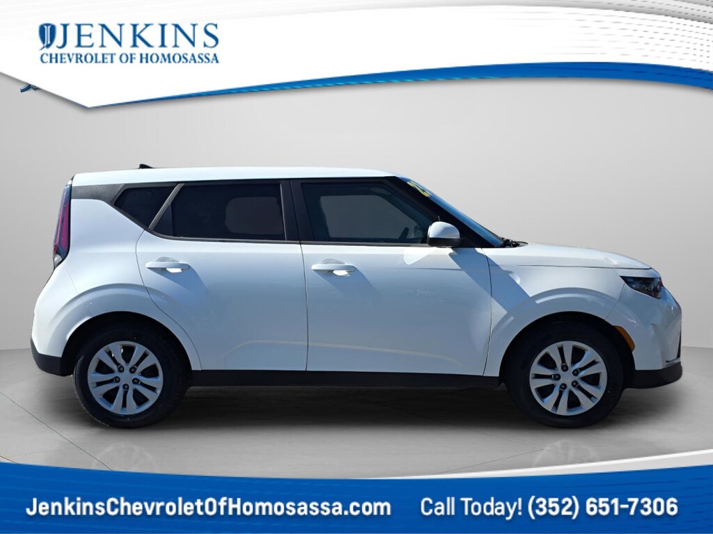 This vehicle comes equipped with 16" Alloy Wheels, 16" Steel Wheels, 4-Wheel Disc Brakes, 6 Speakers, ABS brakes, Air Conditioning, AM/FM radio, Apple CarPlay & Android Auto, Auto High-beam Headlights, Brake assist, Bumpers: body-color, Carpeted Floor Mats, Compass, Delay-off headlights, Driver door bin, Driver vanity mirror, Dual front impact airbags, Dual front side impact airbags, Electronic Stability Control, Exterior Parking Camera Rear, Front anti-roll bar, Front Bucket Seats, Front Center Armrest, Front reading lights, Front wheel independent suspension, Fully automatic headlights, Illuminated entry, Low tire pressure warning, Occupant sensing airbag, Outside temperature display, Overhead airbag, Overhead console, Panic alarm, Passenger door bin, Passenger vanity mirror, Power door mirrors, Power steering, Power windows, Radio data system, Radio: AM/FM/MP3/HD Audio System, Rear window defroster, Rear window wiper, Remote keyless entry, Speed control, Speed-sensing steering, Split folding rear seat, Steering wheel mounted audio controls, Tachometer, Telescoping steering wheel, Tilt steering wheel, Traction control, Trip computer, Variably intermittent wipers, and Woven & Tricot Cloth Seat Trim . Jenkins Chevrolet of Homosassa proudly serving Homosassa, Spring Hill, Hernando, Crystal River, Beverly Hills, Inverness. Just a half hour North of Buccaneer Bay. Come see the large, expansive inventory of the Jenkins Auto Group. 29/35 City/Highway MPG Clean CARFAX. CARFAX One-Owner. Snow White Pearl 2023 Kia Soul LX FWD CVT 2.0L I4 DOHC