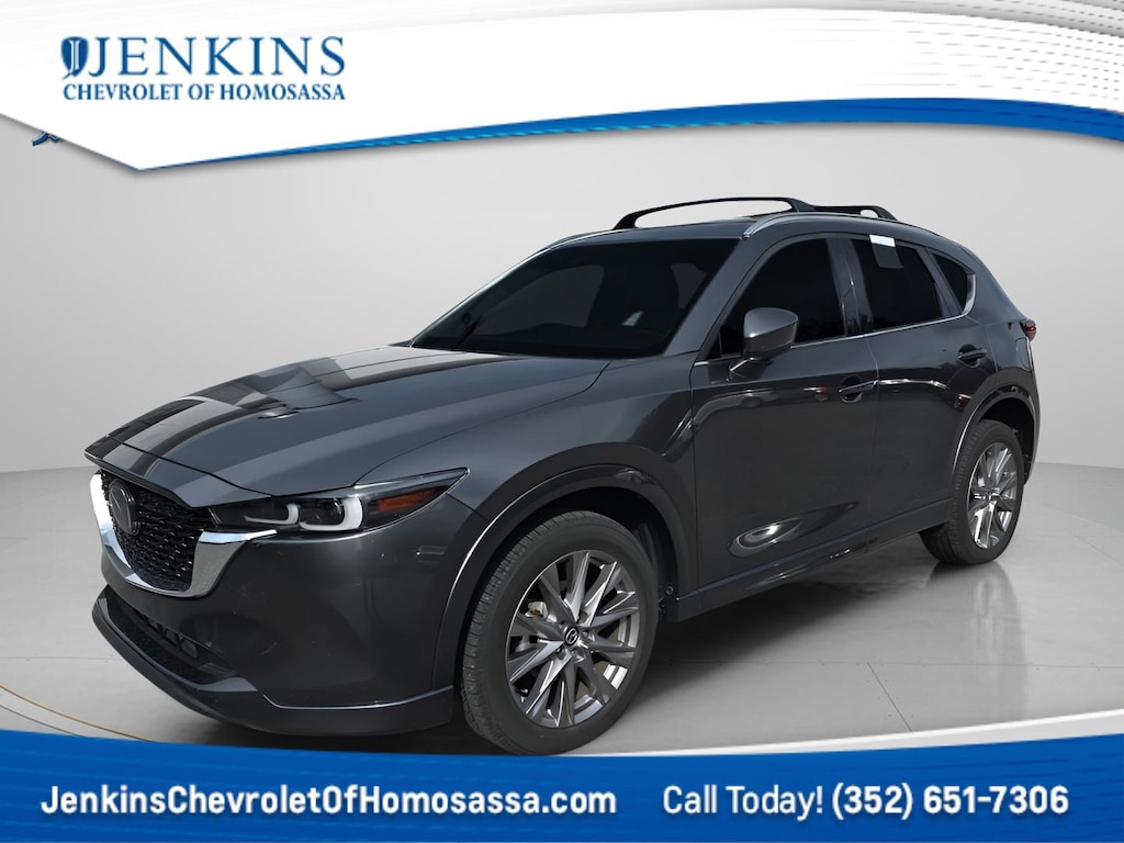 This vehicle comes equipped with Roof Rails & Cross Bars Package, 10 Speakers, 4-Wheel Disc Brakes, 4.624 Axle Ratio, ABS brakes, Air Conditioning, Alloy wheels, AM/FM radio: SiriusXM, AppLink/Apple CarPlay and Android Auto, Auto High-beam Headlights, Auto-dimming Rear-View mirror, Automatic temperature control, Brake assist, Bumpers: body-color, Delay-off headlights, Driver door bin, Driver vanity mirror, Dual front impact airbags, Dual front side impact airbags, E911 Automatic Emergency Notification, Electronic Stability Control, Emergency communication system: MAZDA CONNECT, Exterior Parking Camera Rear, Four wheel independent suspension, Front anti-roll bar, Front Bucket Seats, Front Center Armrest w/Storage, Front dual zone A/C, Front reading lights, Fully automatic headlights, Garage door transmitter: HomeLink, Heads-Up Display, Heated door mirrors, Heated front seats, Heated rear seats, Heated steering wheel, Heated/Ventilated Front Bucket Seats, Illuminated entry, Infotainment System Voice Command, Leather Seat Trim, Leather Shift Knob, Leather steering wheel, Low tire pressure warning, Machine Gray Metallic Paint, Memory seat, Multifunction Commander Control, Occupant sensing airbag, Outside temperature display, Overhead airbag, Overhead console, Pandora, Panic alarm, Passenger door bin, Passenger vanity mirror, Power door mirrors, Power driver seat, Power Liftgate, Power moonroof, Power passenger seat, Power steering, Power windows, Radio Broadcast Data System Program Information, Radio data system, Radio: AM/FM/HD Audio System, Rain sensing wipers, Rear anti-roll bar, Rear reading lights, Rear seat center armrest, Rear window defroster, Rear window wiper, Remote keyless entry, SMS Text Msg Audio Delivery & Reply, Speed control, Speed-sensing steering, Split folding rear seat, Spoiler, Steering wheel mounted audio controls, Tachometer, Telescoping steering wheel, Tilt steering wheel, Traction control, Trip computer, Turn signal indicator mirrors, Variably intermittent wipers, Ventilated front seats, Wheel Locks, and Wheels: 19" x 7J Aluminum Alloy . Jenkins Chevrolet of Homosassa proudly serving Homosassa, Spring Hill, Hernando, Crystal River, Beverly Hills, Inverness. Just a half hour North of Buccaneer Bay. Come see the large, expansive inventory of the Jenkins Auto Group. 23/29 City/Highway MPG Clean CARFAX. CARFAX One-Owner. Machine Gray Metallic 2024 Mazda CX-5 2.5 S Premium Plus Package AWD 6-Speed Automatic 2.5L I4 DOHC 16V LEV3 SULEV30 187hp