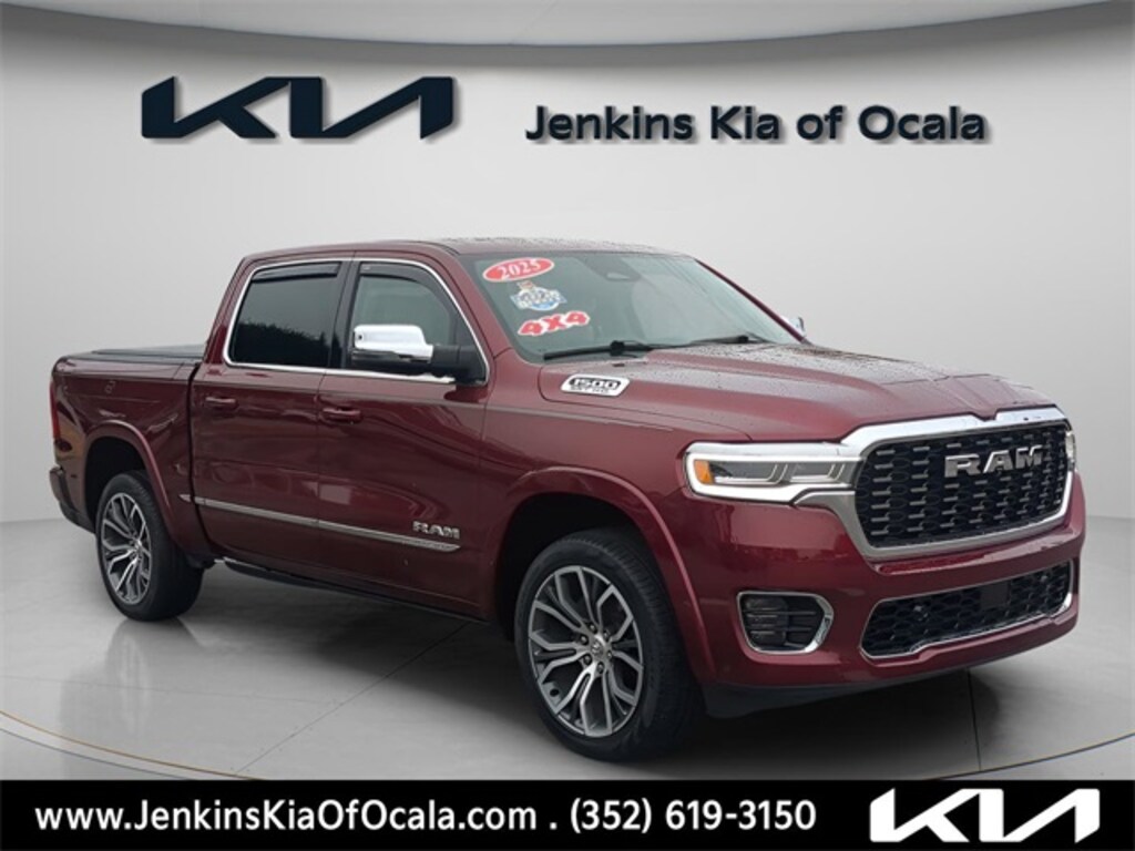 This vehicles comes equipped with Quick Order Package 22V Tungsten, 12-Way/1-Way Trailer Connector, 3.92 Rear Axle Ratio, 4-Wheel Disc Brakes, ABS brakes, Adjustable pedals, Air Conditioning, Alloy wheels, AM/FM radio: SiriusXM with 360L, Apple CarPlay/Android Auto, Audio memory, Auto High-beam Headlights, Auto Power-Folding Mirrors, Auto-dimming door mirrors, Auto-Dimming Exterior Driver Mirror, Auto-dimming Rear-View mirror, Auto-leveling suspension, Automatic temperature control, Bodyside moldings, Brake assist, Bumpers: body-color, Chrome Exterior Mirrors, Compass, Delay-off headlights, Driver door bin, Driver vanity mirror, Dual front impact airbags, Dual front side impact airbags, Electronic Stability Control, Exterior Mirrors Courtesy Lamps, Exterior Mirrors w/Heating Element, Exterior Mirrors w/Memory, Exterior Mirrors w/Supplemental Signals, Front anti-roll bar, Front Bucket Seats, Front Center Armrest w/Storage, Front dual zone A/C, Front fog lights, Front License Plate Bracket, Front reading lights, Front wheel independent suspension, Fully automatic headlights, Garage door transmitter, Heads-Up Display, Heated door mirrors, Heated front seats, Heated rear seats, Heated steering wheel, Illuminated entry, Leather steering wheel, Low tire pressure warning, Memory seat, Multi-Function Tailgate, Navigation System, Occupant sensing airbag, Outside temperature display, Overhead airbag, Overhead console, Panic alarm, Passenger door bin, Passenger vanity mirror, Pedal memory, Power adjustable front head restraints, Power door mirrors, Power driver seat, Power moonroof, Power passenger seat, Power steering, Power windows, Premium Leather Bucket Seats, Radio data system, Radio: Uconnect 5 Nav w/14.4" Display, Rain sensing wipers, RAM's Head Badge, Rear anti-roll bar, Rear reading lights, Rear seat center armrest, Rear step bumper, Rear window defroster, Remote keyless entry, Remote Tailgate Release, Security system, Speed control, Split folding rear seat, Steering wheel mounted audio controls, Tachometer, Telescoping steering wheel, Tilt steering wheel, Traction control, Trailer Brake Control, Trip computer, Turn signal indicator mirrors, Variably intermittent wipers, Ventilated front seats, Ventilated rear seats, Voltmeter, and Wheels: 22" x 9" Polish/Painted w/Inserts . Recent Arrival!