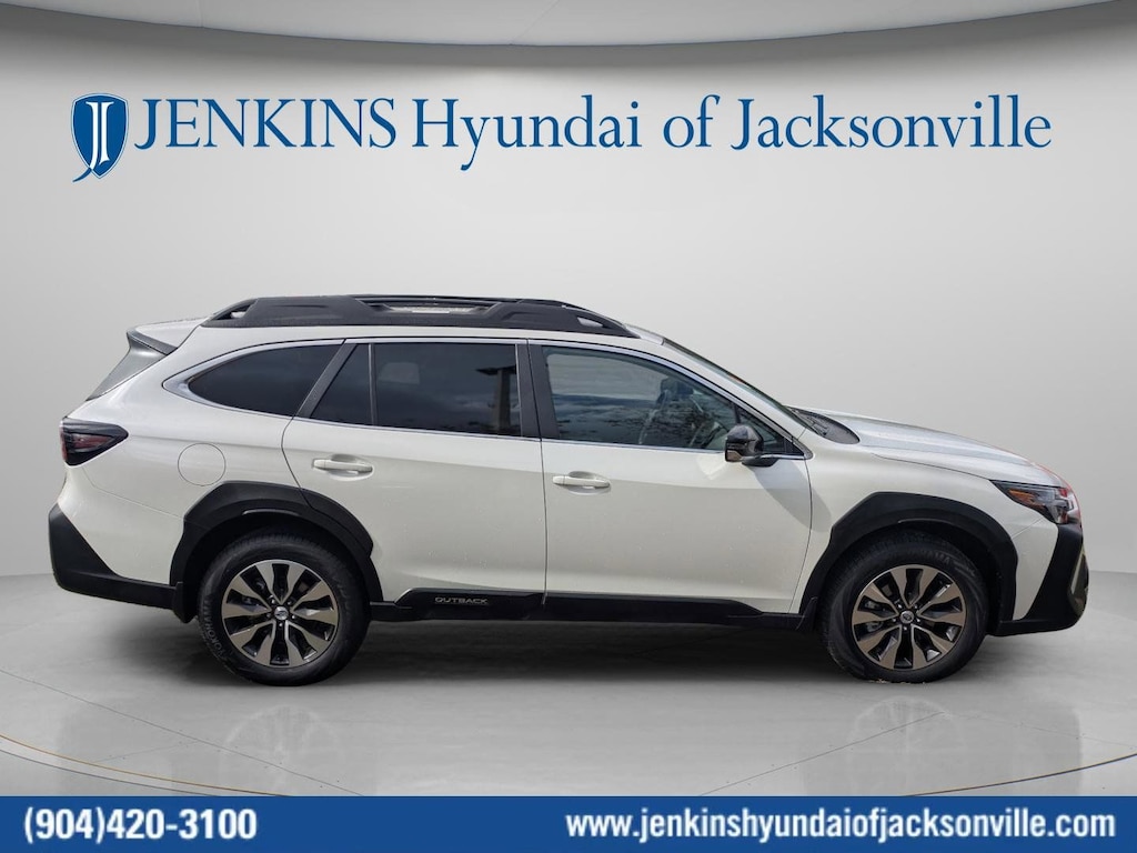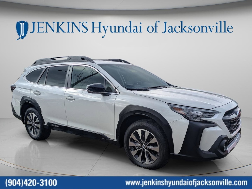 The price does not include tax, tag, license, an electronic filing fee of $449.00**, a private tag agency fee of $199.00**, and a predelivery service charge of $1199.00** **This charge represents costs and profit to the dealer for items such as inspecting, cleaning, and adjusting vehicles, as well as preparing documents related to the sale. * EPA-estimate metric: these are contingent on ideal conditions within a lab. Real-world situations such as carrying passengers or cargo, using climate control, driving style, and ambient temperatures can affect actual metrics. 22/29 City/Highway MPG CARFAX One-Owner. Clean CARFAX. This 2025 Subaru Outback Limited XT in Crystal White Pearl features Popular Package #2 (All-Weather Floor Liners, Auto-Dimming Exterior Mirror w/Approach Light, LED Upgrade, Rear Bumper Cover, Rear Seat Back Protector, and Splash Guards), Standard Model, 12 Speakers, 4-Wheel Disc Brakes, ABS brakes, Air Conditioning, Alloy wheels, AM/FM radio: SiriusXM with 360L, Apple CarPlay & Android Auto, Auto High-beam Headlights, Auto-dimming Rear-View mirror, Automatic temperature control, Brake assist, Bumpers: body-color, Compass, Driver door bin, Driver vanity mirror, Dual front impact airbags, Dual front side impact airbags, Electronic Stability Control, Emergency communication system: MySubaru Safety (3-year free trial), Exterior Parking Camera Rear, Four wheel independent suspension, Front anti-roll bar, Front Bucket Seats, Front Center Armrest w/Storage, Front dual zone A/C, Front fog lights, Front reading lights, Fully automatic headlights, Garage door transmitter: HomeLink, harman/kardon® Speakers, Heated door mirrors, Heated Front Bucket Seats, Heated front seats, Heated rear seats, Heated steering wheel, HVAC memory, Illuminated entry, Knee airbag, Leather Shift Knob, Leather steering wheel, Low tire pressure warning, Memory seat, Navigation system: TomTom Navigation w/what3words, Occupant sensing airbag, Outside temperature display, Overhead airbag, Overhead console, Panic alarm, Passenger door bin, Passenger vanity mirror, Perforated Leather-Trimmed Upholstery, Power door mirrors, Power driver seat, Power Liftgate, Power moonroof, Power passenger seat, Power steering, Power windows, Radio: Subaru 11.6" Multimedia System w/Navigation, Rear anti-roll bar, Rear seat center armrest, Rear window defroster, Rear window wiper, Remote keyless entry, Roof rack, Security system, Speed control, Speed-sensing steering, Split folding rear seat, Spoiler, Steering wheel mounted audio controls, Tachometer, Telescoping steering wheel, Tilt steering wheel, Traction control, Trip computer, Turn signal indicator mirrors, Variably intermittent wipers, and Wheels: 18" x 7J Black Aluminum-Alloy . Visit our showroom 24/7 at Jenkinshyundaiofjacksonville or call 904-420-3100. AWD